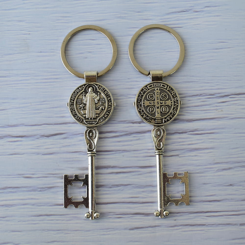 Llavero de San Benito: 9.5 cm x 2.5 cm.
